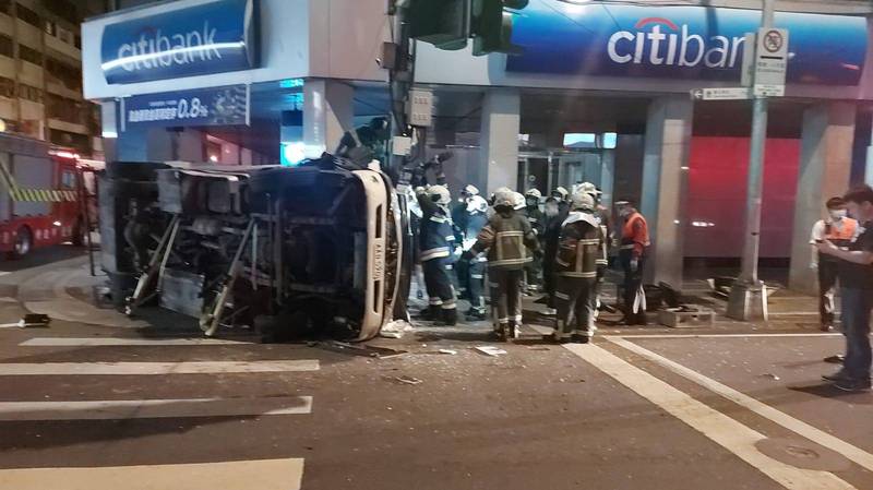 附近民眾見狀報警,救護人員趕到現場將受困在駕駛座內的陳救出,幸虧陳只有頭部與四肢輕微擦挫傷,沒有大礙。